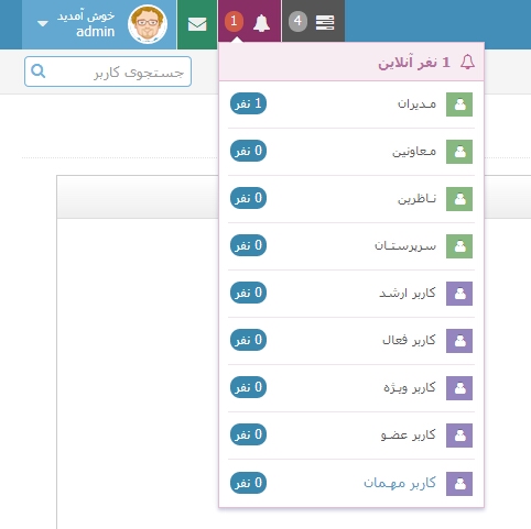 پنل ناظران و معاونان دارای ۱۲ عدد امکانات شده است.